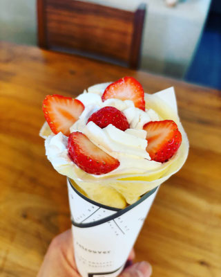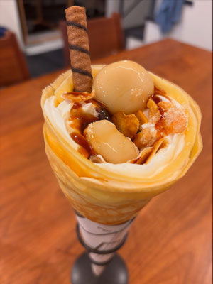 甘すぎないモチモチ生地は、フルーツ系の甘味を引立て、惣菜系の塩味にも良く合います。
